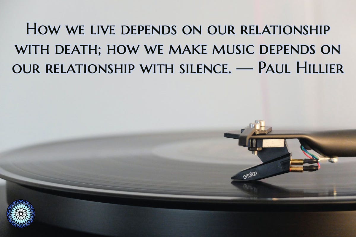 Hillier challenges us to see the relationship between music and silence as a metaphor for the relationship between life and death; I would add to this that music is not the only aspect of human experience to emerge from silence: all human language, thought, cognition, prayer and awareness likewise is manifest out of the matrix of sacred silence. To trust death is necessary to live well — even though we naturally strive to avoid or delay our eventual appointment with mortality. Likewise, to trust silence is necessary to make music, or to speak or pray or even think: silence is never the enemy of speech, but its most ancient and sacred ally.