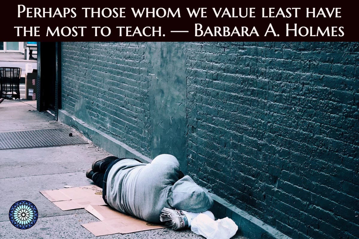 Perhaps contemplative spaces can be found wherever people skirt the margins of inclusion. Perhaps those whom we value least have the most to teach. — Barbara A. Holmes