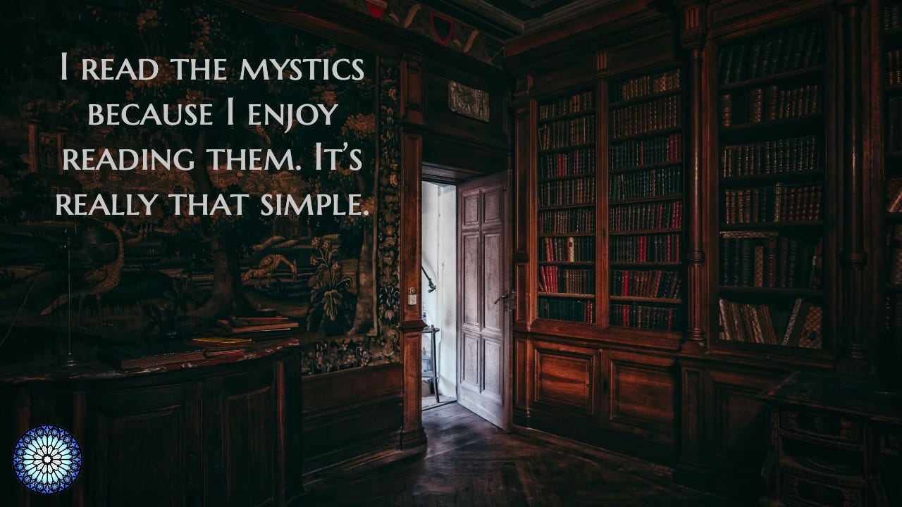 I read the mystics because I enjoy reading them. It’s really that simple.