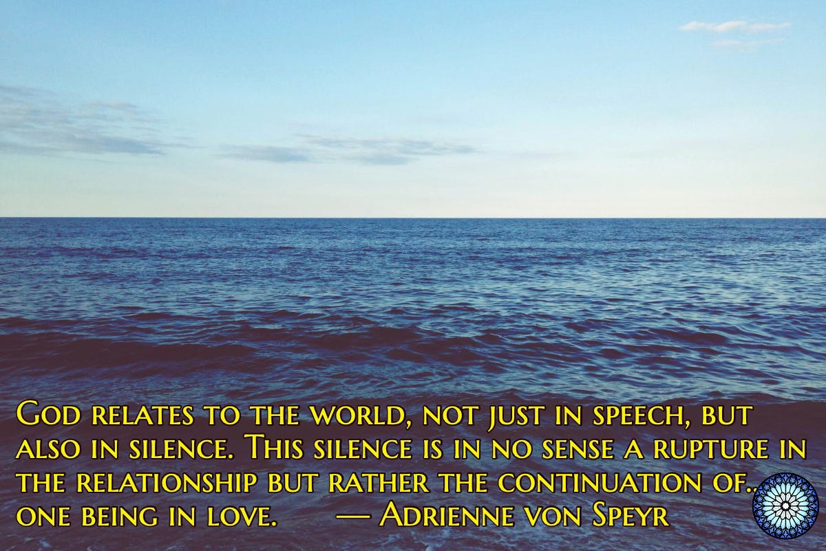 God relates to the world, not just in speech, but also in silence. This silence is in no sense a rupture in the relationship but rather the continuation of that which was the Father’s togetherness with the Son in the Holy Spirit in eternity before the creation: one being in love. — Adrienne von Speyr
